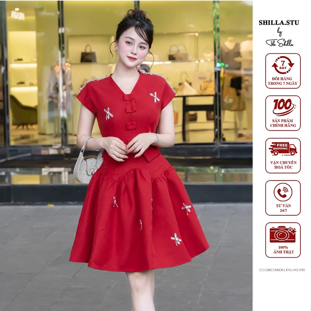 Váy đầm thiết kế cao cấp màu đỏ phối đá đính kết sang trọng [ Ảnh thật ] The Shilla-CG.C66C1.66D6.LEXU.M2.V90 – ĐỎ